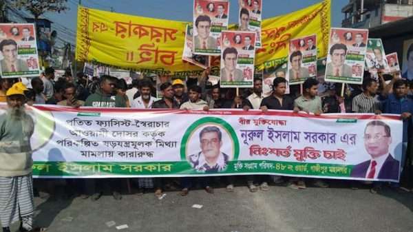 আওয়ামী লীগের দলীয় সাবেক সংসদ সদস্য আহসান উল্লাহ মাস্টার হত্যা মামলায় কারারুদ্ধ যুবদলের সাবেক কেন্দ্রীয় নেতা নূরুল ইসলাম সরকারের মুক্তির দাবিতে মানববন্ধন ও বিশাল সমাবেশ অনুষ্ঠিত হয়েছে। শনিবার দুপুরে টঙ্গী