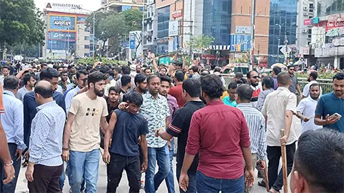 মোহাম্মদপুর বাসস্ট্যান্ডে ছাত্রলীগ-যুবলীগ ও পুলিশের সঙ্গে আন্দোলনকারীদের ব্যাপক সংঘর্ষ চলছে। আজ বিকাল সাড়ে ৩টার দিকে সংঘর্ষ শুরু হয়। এ সময় পুলিশ, ছাত্রলী ও যুবলীগের গুলিতে অন্তত ১১ জন আন্দোলনকারী আহত
